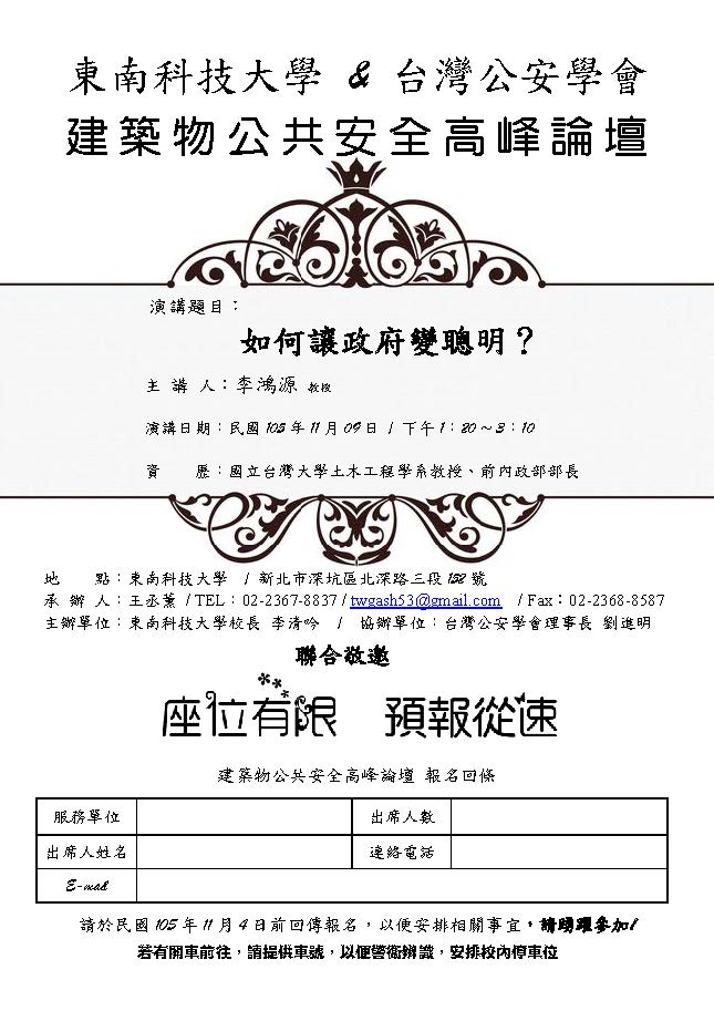 建築物公共安全高峰論壇 - 主講人:李鴻源教授